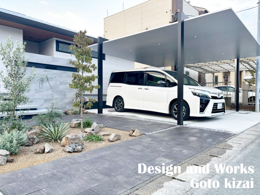 おしゃれなアプローチ アプローチ タイルデッキ カーポート おしゃれな門袖 タイル門袖 門袖 ホテルライク 駐車スペース 玄関アプローチ 新築外構一式